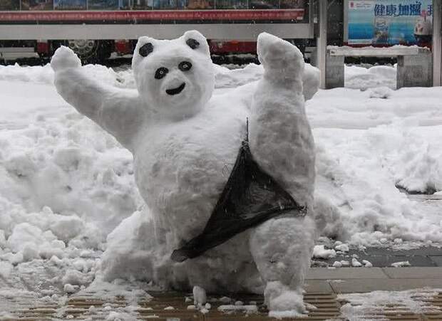 А когда обыденные формы снеговиков уже не вдохновляют, на смену им есть свежие решения. И необузданная фантазия некоторых людей в который раз доказывает, что знакомый нам всем с детства снеговик — это не обязательно три шара и морковка.