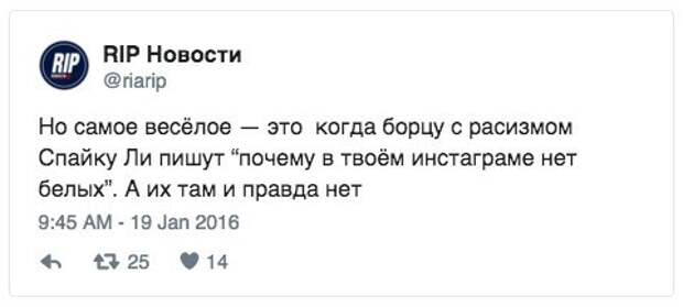Кинорежиссёр Спайк Ли заявил, что не будет присутствовать на оскаровской церемонии из-за того, что среди номинантов нет темнокожих (сам Ли — афроамериканец).
