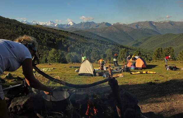 3786 метров над уровнем моря. Одинокая палатка на пологом склоне горы изображает из себя "базовый лагерь". Темнеет. У костерка отдыхают парни, которые сегодня 10 часов перлись в гору со всем этим имуществом на спине. Все устали как черти. Вдруг с неба опускается желтенький вертолет с "финским домиком" на тросовой подвеске, ставит этот домик на склон в 30 метрах от палатки, затем вертолет присаживается, выгружает человек 5 иностранцев (тоже альпинисты, ага), и улетает.