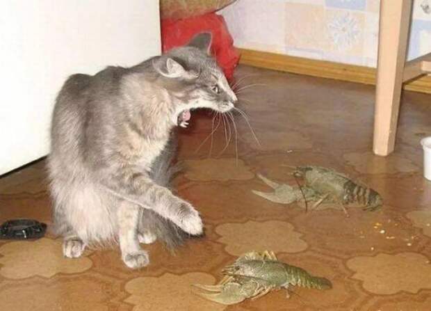 Я так по стеночке робко до кухни пошла, вижу, кошку жопой вперед из кухни выносит, как взрывной волной. Ну я так же по стеночке и вернулась, я вообще членистоногих не сильно-то люблю, зачем судьбу испытывать.